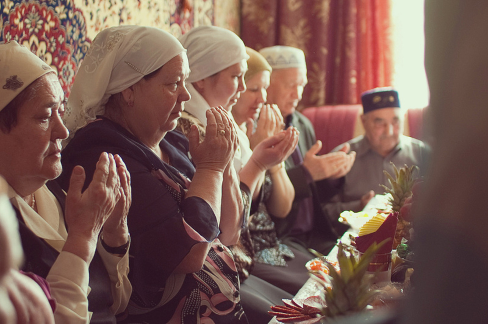 Татары проводят поминки скромнее. Весь обряд в этом регионе сконцентрирован на молитвах. К концу трапезы раздают подарки – «хаер». При этом принято жертвовать 50-100 рублей. Людям, которые уходят с поминальной трапезы, раздают угощения со стола. После чего те молятся за душу усопшего. Бытует мнение, что чем больше людей читает молитвы за умершего татарина, тем выше его шансы попасть в рай.