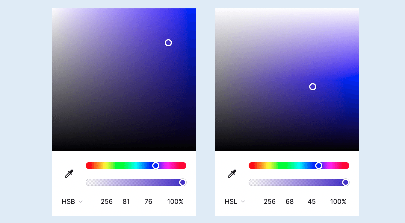 Раздражает, что большая часть дизайнерского софта использует довольно похожий формат HSB (Hue-Saturation-Brightness) вместо HSL (Hue-Saturation-Lightness).