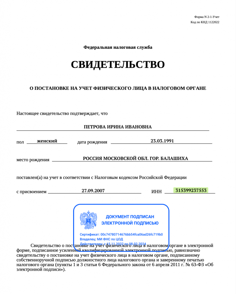 Как выглядит ИНН и как его получить физическому лицу