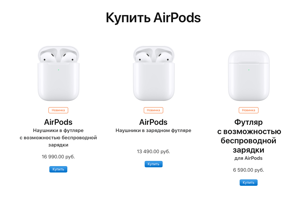 AirPods второго поколения выглядят и работают почти точно так же, как и первое поколение, и они стоят столько же — 13 490 рублей в официальном онлайн-магазине. Но они обойдутся в почти 17 000 рублей, если вам нужен дополнительный чехол для беспроводной зарядки, который работает со стандартными беспроводными зарядными устройствами. Вы также можете приобрести чехол для беспроводной зарядки отдельно за 6 590 рублей и использовать его с AirPods первого поколения.