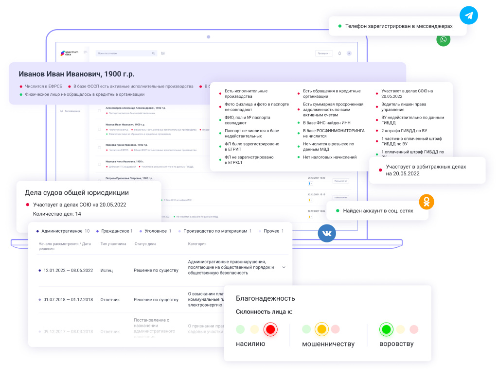 Компания может убедиться в благонадежности будущего работника с помощью сервиса от SpectrumData за 5 минут, включая: