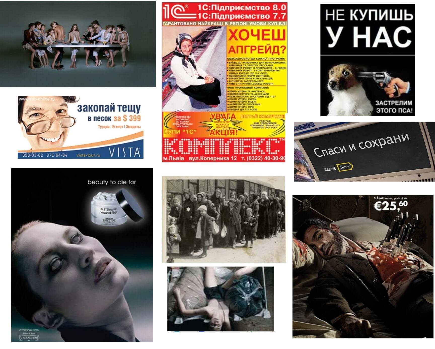 Речь идет не просто о глобальном недоверии рекламе, а о том, что показательно идеальные образы выглядят недостоверно. Отсюда и стремление современных рекламодателей использовать образы, приближенные к реальности, в том числе провокационные и скандальные. Даже суровые европейские соседи используют негативные оттенки в названиях брендов.