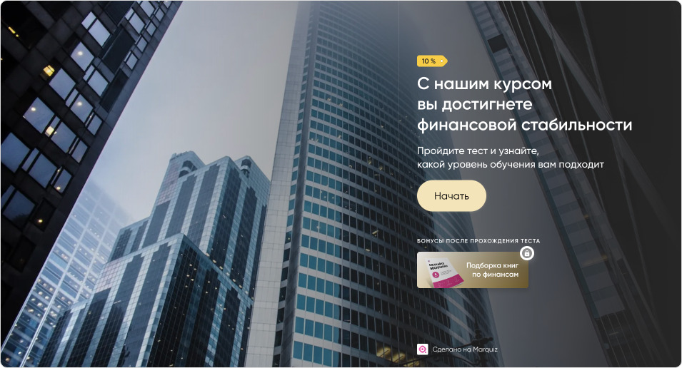 Пример: «С нашим курсом вы достигнете финансовой стабильности. Пройдите тест и узнайте, какой уровень обучения вам подходит».