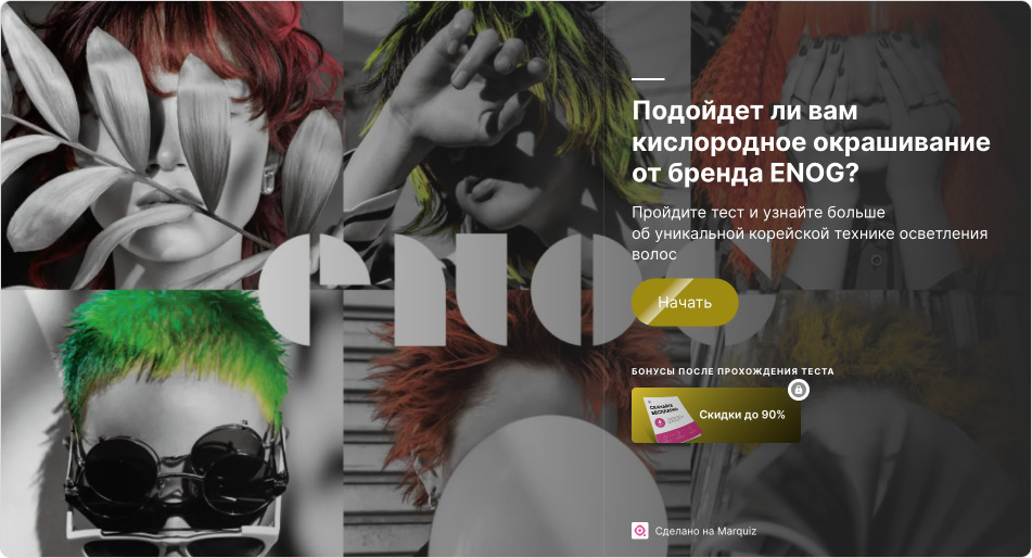 Пример: «Пройдите тест и узнайте больше об уникальной корейской технике осветления волос».