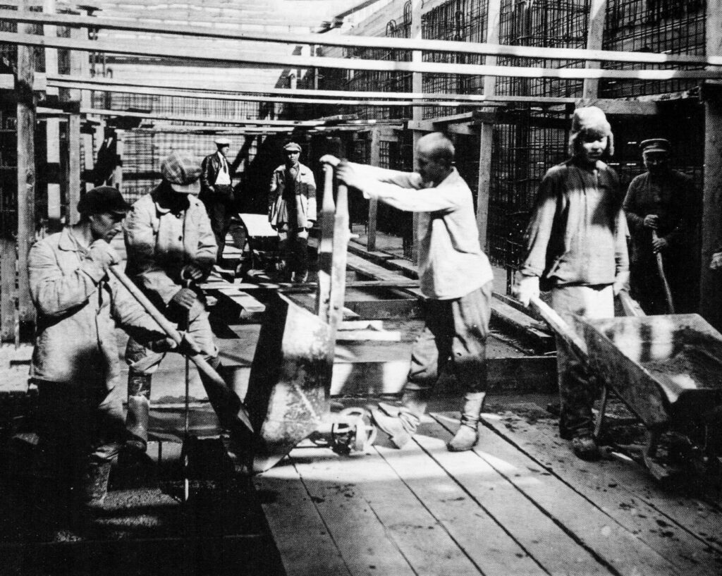 Бетонщики “Азотстроя” за работой. Фото: архив музея истории завода “Химпром”