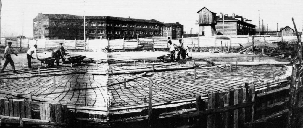 Начало строительства газгольдера, 1930-е. Фото: архив музея истории завода “Химпром”