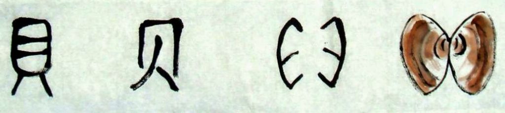 In ancient times, the character “贝” originally referred to seashells, an early currency. This is because shells were rare objects to ancient Chinese mainlanders who lived far from the sea. So, the pictographic character “贝” received another meaning, money. Gradually, the meaning was extended to mean valuable or precious things.