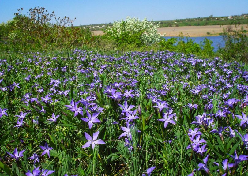 Местом возникновения растения является Крымский полуостров, Карпаты, Кавказ и частично Европа. Цветет каждый год, образуя при этом метровые расстилающиеся стебли с маленькими кожистыми листиками темного оттенка зеленого цвета. Создает сравнительно неплотный покров из голубых цветочков.