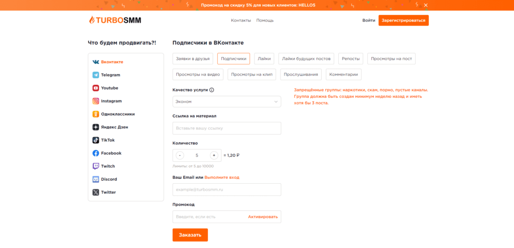 TurboSMM — это надёжный и простой сервис для увеличения числа подписчиков в вашей группе Вконтакте. Сервис обладает интуитивно понятным интерфейсом, что делает процесс заказа чрезвычайно легким и удобным.