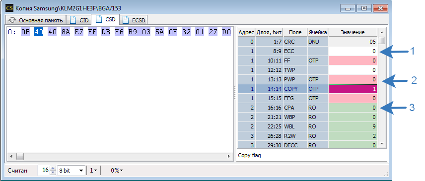 Отдельные части регистров размером от одного бита до нескольких байтов описывают свойства микросхемы или управляют определенными свойствами этой микросхемы. В этом смысле регистры eMMC функционально схожи с регистрами конфигурации (fuses) микроконтроллеров, представление которых очень удобно реализовано в редакторе ChipStar. Однако регистры eMMC по размеру значительно больше, поэтому в программаторе иx представление реализовано несколько иным образом.