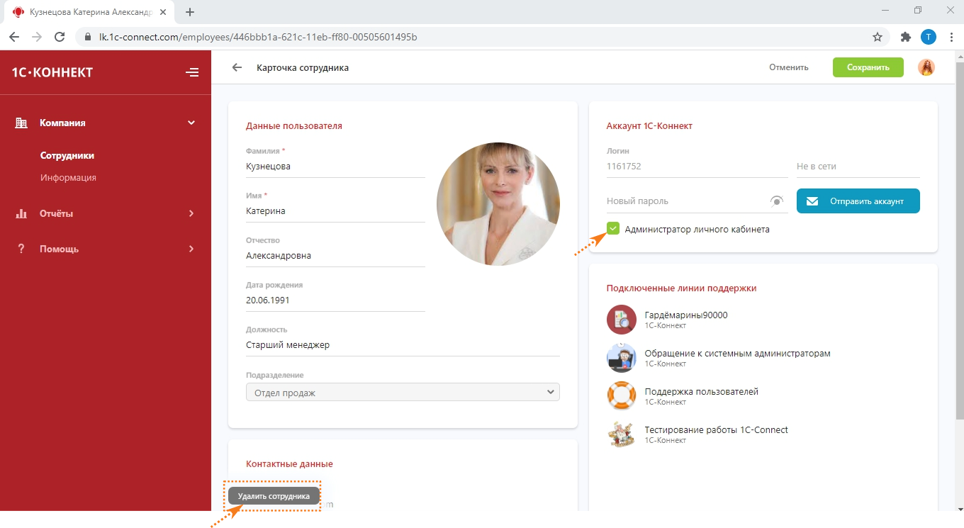 Серверы, на которых организовано хранение данных о пользователях 1С-Коннект, размещены в защищенных ЦОДах на территории Российской Федерации.