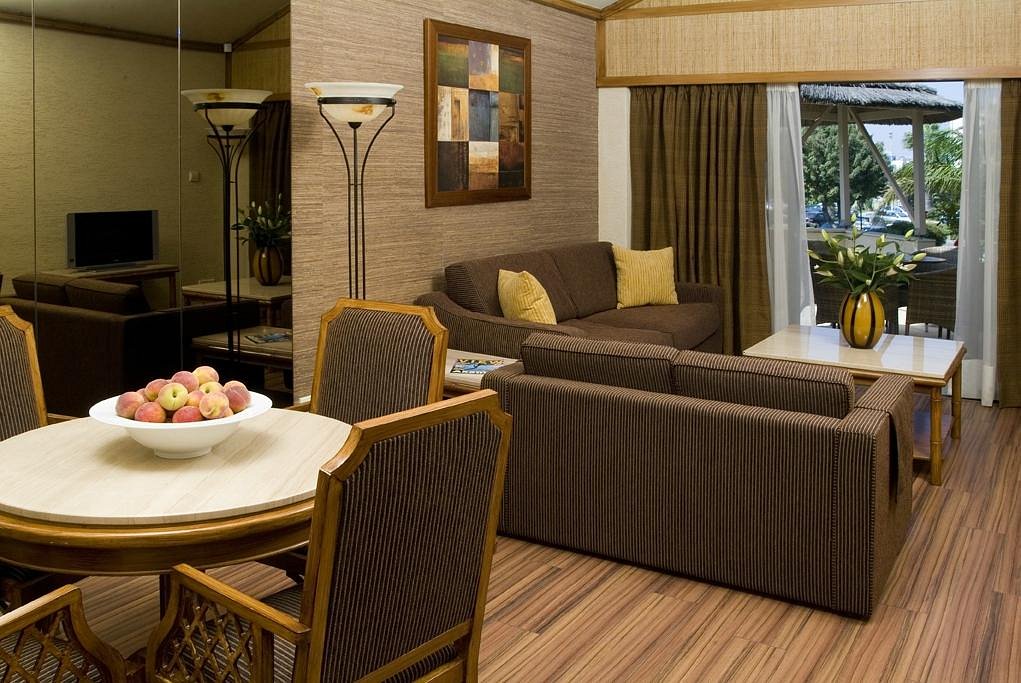 Студия — чуть просторнее стандартного номера. Но иногда можно встретить вот такую уютную студию-бунгало, как в отеле Palm Beach Hotel&Bungalows на Кипре.