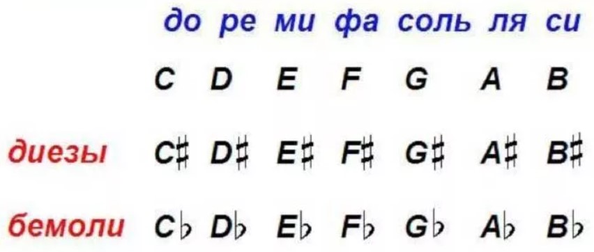Неполные звуки имеют в наименовании дополнительные знаки – диез и бемоль. Как видно из таблицы, некоторые ноты имеют одинаковое звучание, но название у них отличается. Это нужно для того, что в игре гамм при восходящем движении обозначаются ноты с диезом, а при нисходящем наоборот. Также один и тот же звук по – разному обозначается в энгармонических гаммах.