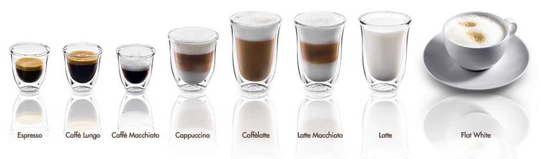 Существует 4 вида кофе, являющихся, на первый взгляд, аналогами эспрессо и отличающихся друг от друга объемом. Но ни один из них по вкусу не напоминает другой. Не схожи они и с самим напитком-основой. Разница в способе приготовления определяет индивидуальные вкусовые характеристики каждого.