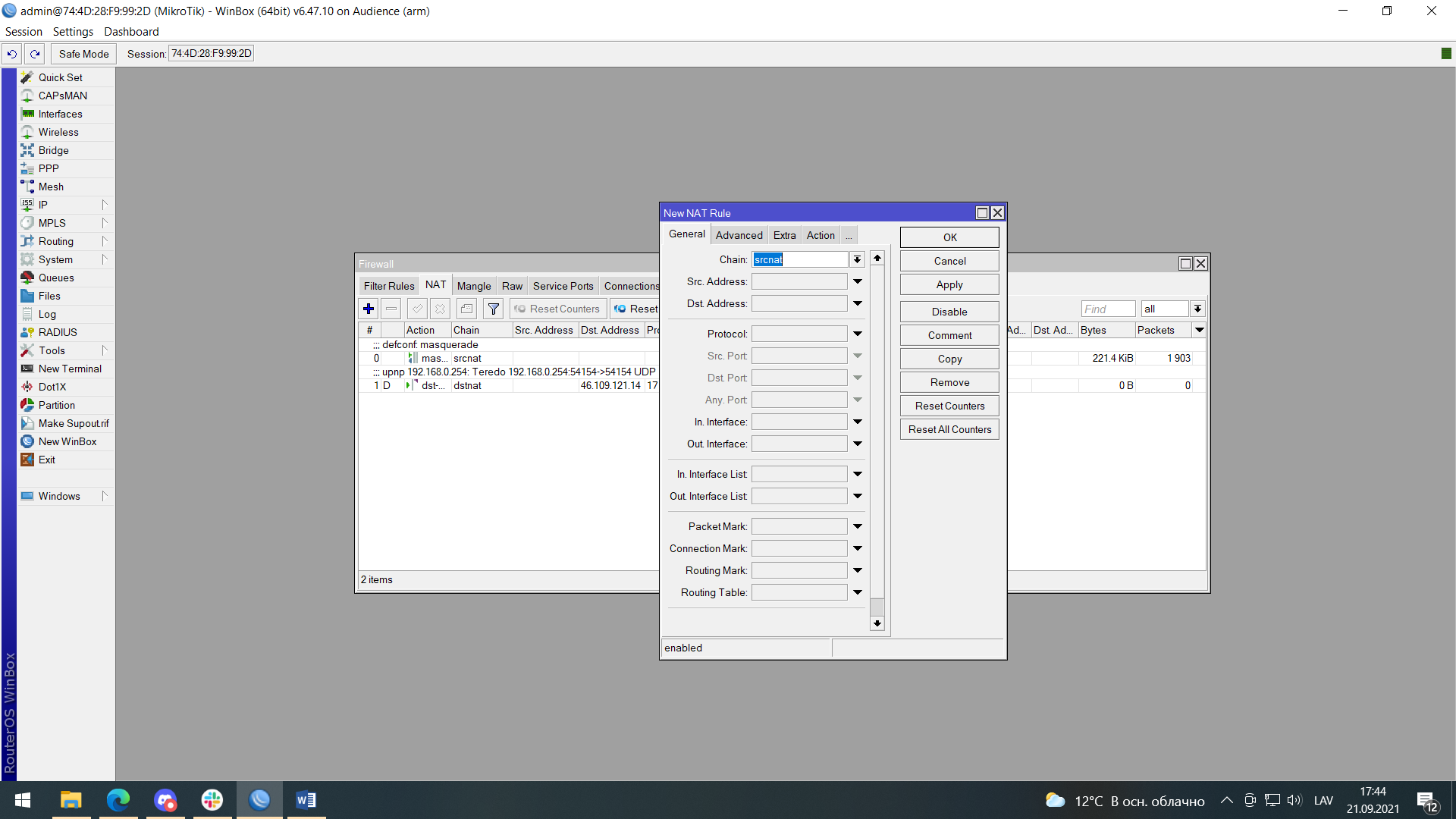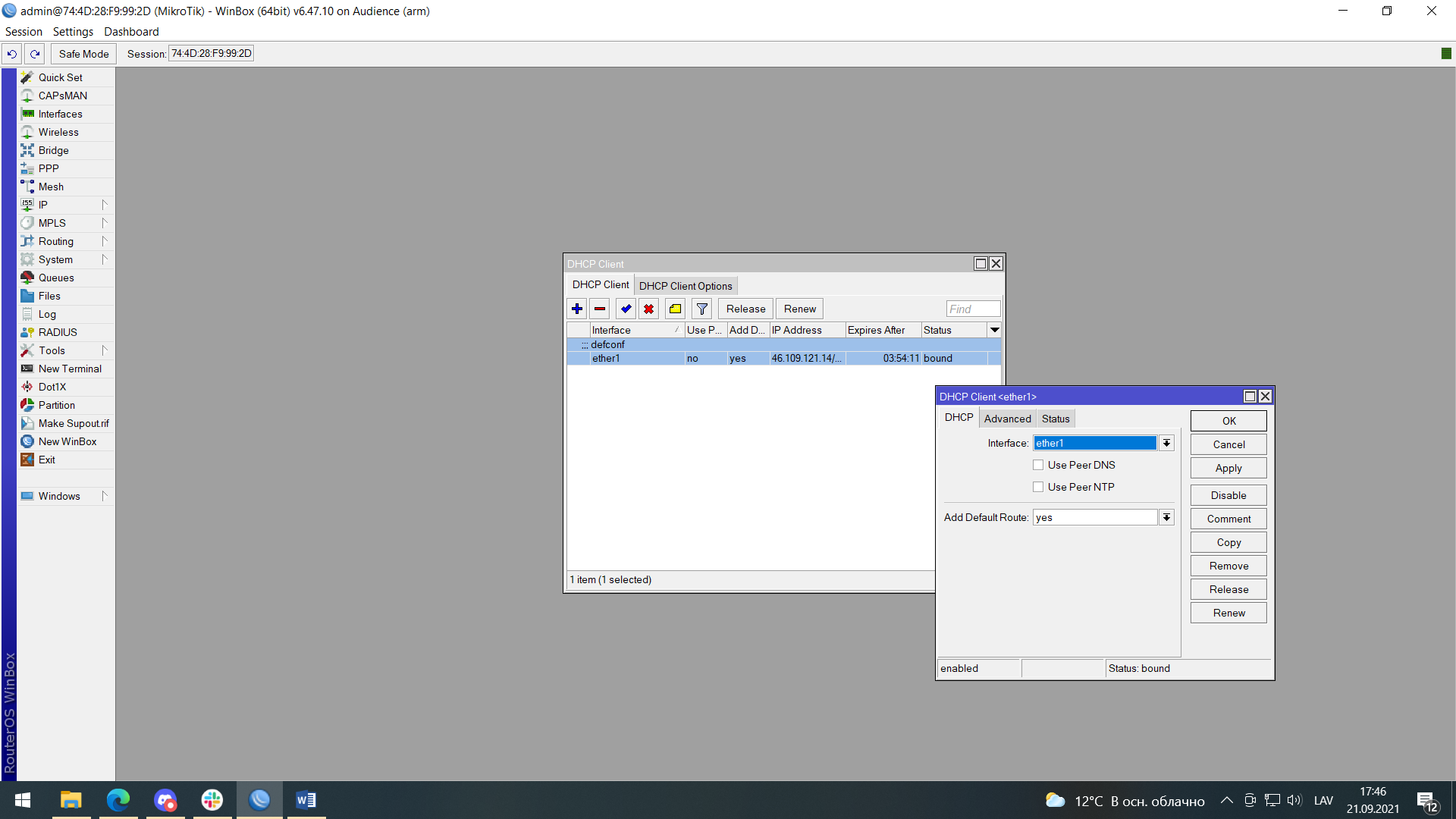 Восстановления пароля — если забыт пароль для доступа к устройству, можно воспользоваться параметром Mikrotik defconf deassigned для сброса пароля и входа в устройство по установленным по умолчанию данным;