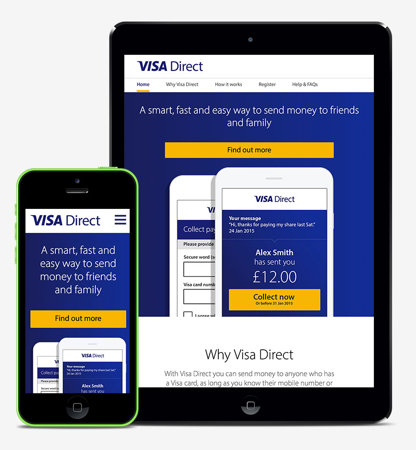 Неважно, хотите ли вы отправить пособие на ребенка или деньги своему другу, в любом случае Visa Direct — это быстрый, простой и безопасный способ перевести деньги. Благодаря поддержке нашей платежной сети по всему миру вы можете легко и быстро отправлять переводы своим друзьям и семье