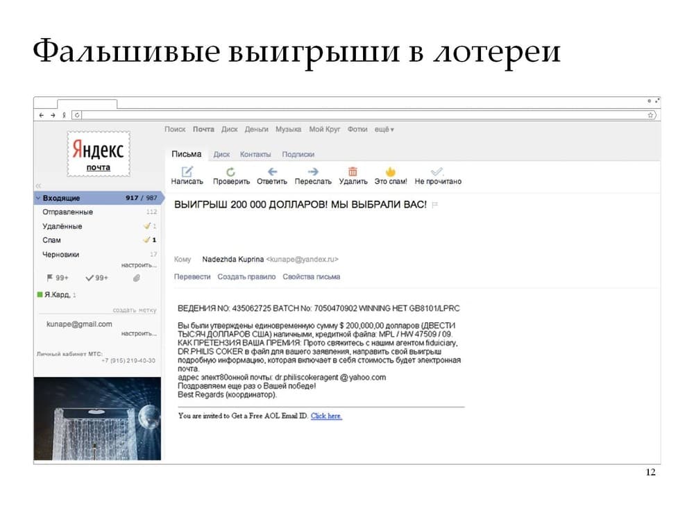 В большинстве своем такие письма рассылаются всем подряд в надежде, что кто-то откликнется. Но бывают и адресные рассылки, направленные именно на определенного человека: популярного блогера, сотрудника значимого предприятия и т. п. Подобные схемы лучше продуманы, и от них непросто увильнуть.