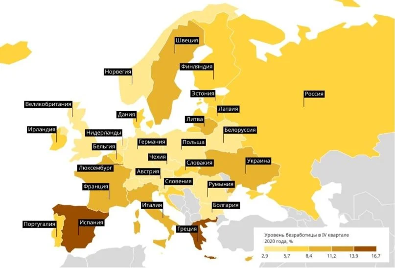 Вот так обстояли дела с безработицей в Европе в конце 2020 года.