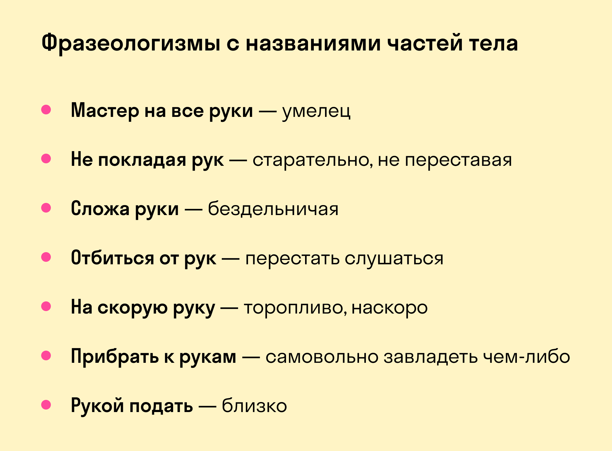 Фразеологизмы — это устойчивые выражения из двух и более слов. Они отлично живут в нашей культуре, при этом их невозможно дословно перевести на другие языки — для иностранца такой перевод будет звучать странно и непонятно.