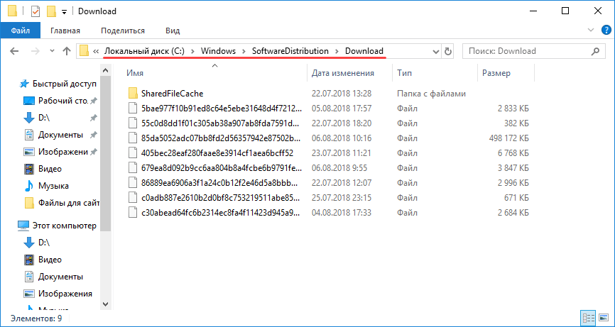 Заходим на системный диск и находим каталог с именем SoftwareDistribution и очищаем все содержимое.