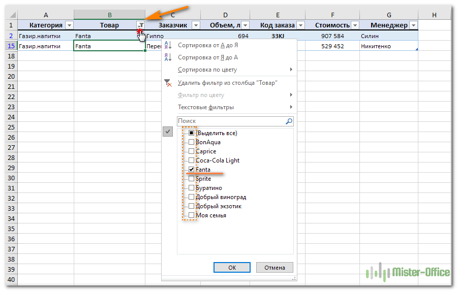 Организовав свои данные в виде таблицы, вы можете применять к ним различные фильтры. Фильтр в таблице вы можете установить по одному либо по нескольким столбцам. Давайте рассмотрим на примере.