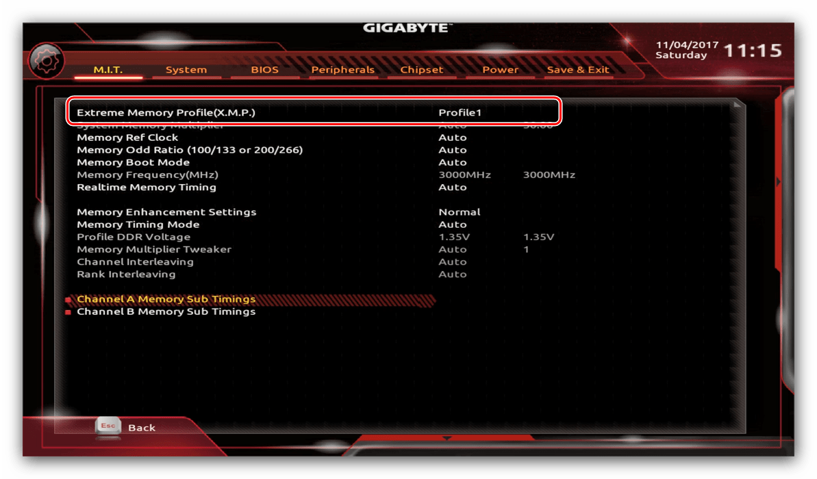В нём перейдите к опции «Extreme Memory Profile (X.M.P.)».