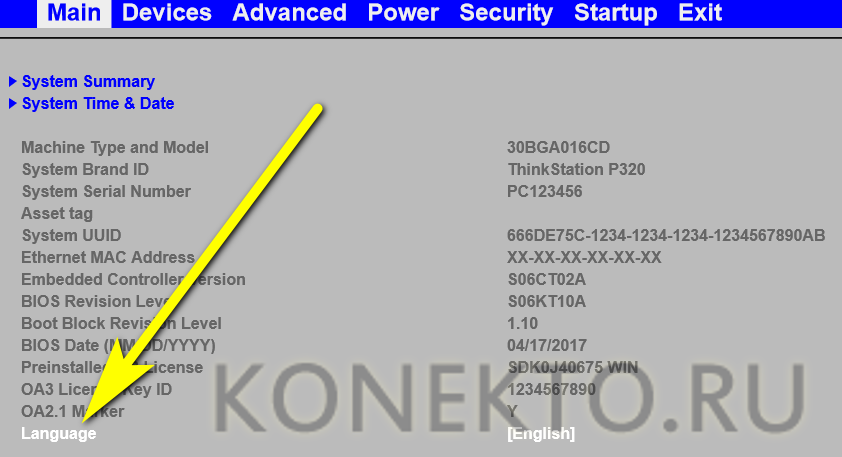 И указать предпочтительный вариант — к сожалению, для абсолютного большинства версий БИОС русский язык не предусмотрен.