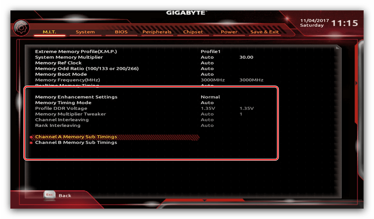 - Из главного меню перейдите к параметру «Advanced Memory Settings», расположенному на вкладке «M.I.T».
