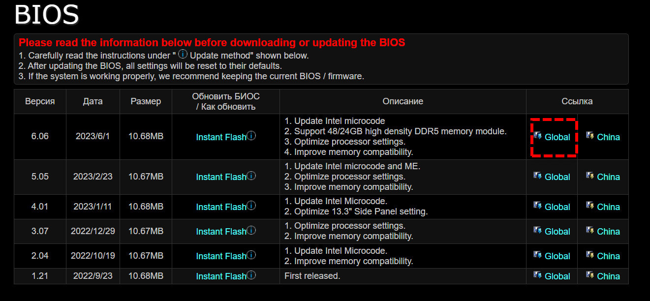 Чтобы скачать прошивку для BIOS с сайта производителя, нужно поступить следующим образом: