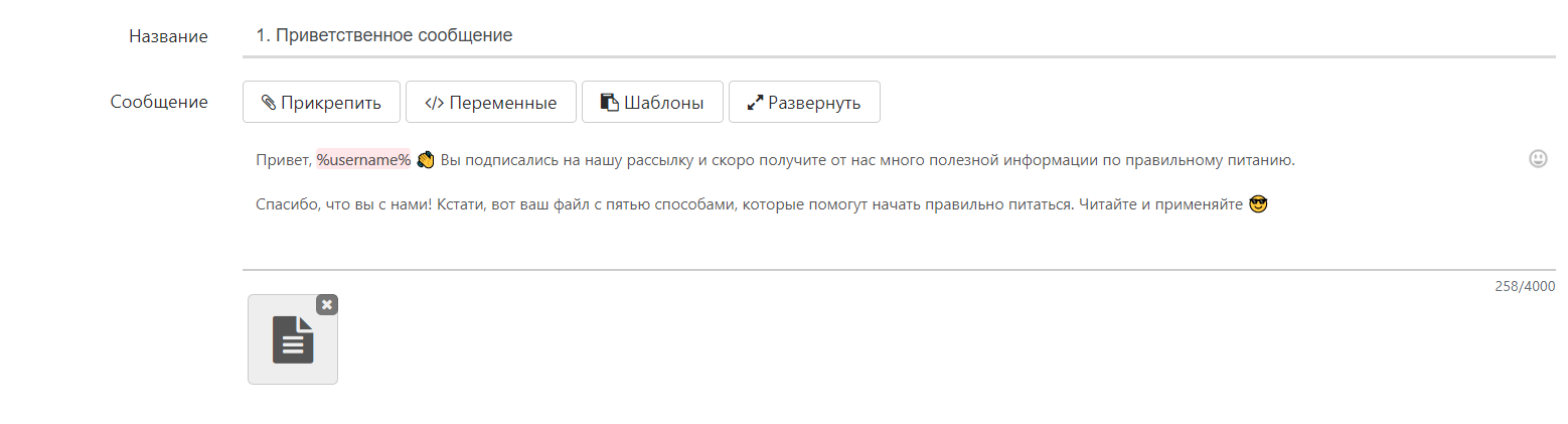 Нужно учесть, что рядом с каждым сообщением указан временной интервал с момента подписки, через который оно будет отправлено пользователям.