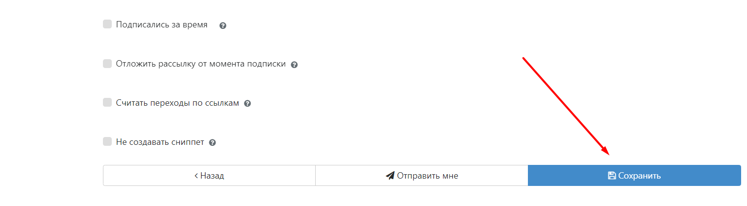 - разовая рассылка – рассылка по всем подписчикам или сегментам (можно задать с помощью фильтров).