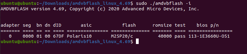 Save the file inside the folder amdvbflash_linux_4.69 for ease of use. In my case, the ROM file name is: Sapphire.RX580.8192.170323.rom