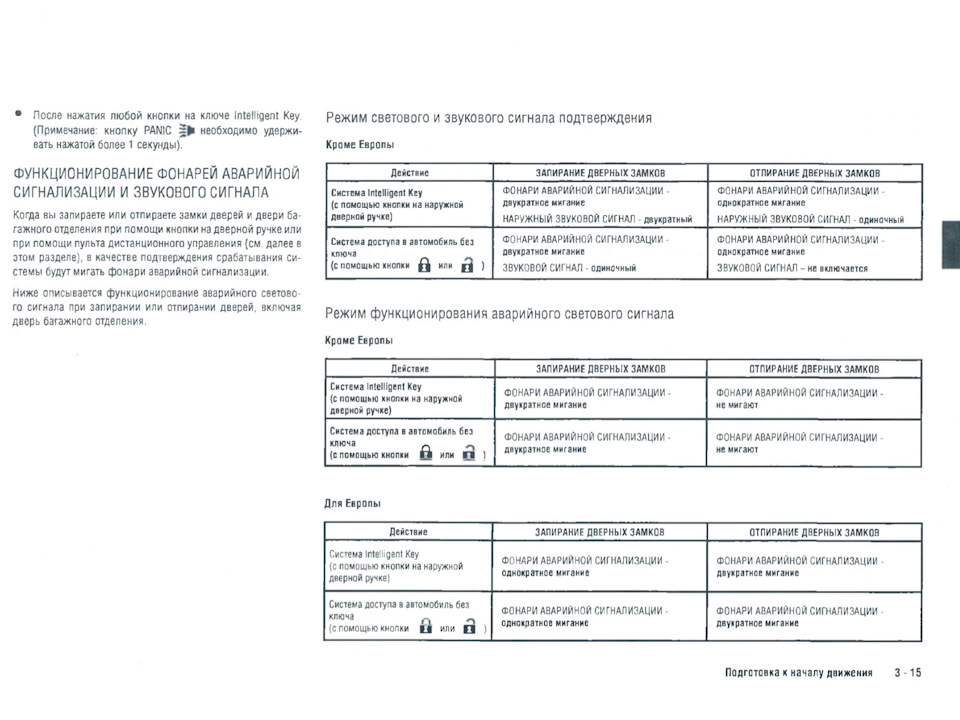 В американских Infiniti есть функция подачи звукового сигнала при открытии/закрытии автомобиля при использовании системы доступа в автомобиль без ключа (кнопка на ручке).