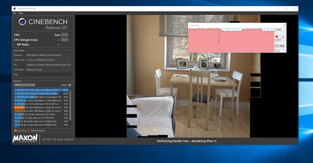 На скриншотах ниже для наглядности показана зависимость напряжения (по вертикали) от выбранного уровня LLC и уровня нагрузки на процессор (по горизонтали). Для проведения тестирования использовались режимы Level 1 и Level 3. В данном конкретном случае проводилось тестирование процессора AMD Ryzen 5 2600X с помощью бенчмарка Cinebench R20. Для проведения мониторинга показаний и вывода графиков использовалась утилита HWiNFO64. Для режима Level 1 имеем следующую картину:
