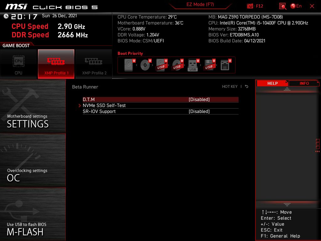 Ничего не понятно ? Мне тоже было ничего не понятно. Оказывается, что D.T.M. (Disable Title Message) это специальный режим для OEM производителей, который отключает отображение вывода агента загрузки. Он предназначен для тех, кто хочет сделать загрузку системы невидимой пользователю. SR-IOV это сокращение от Single Root Input / Output Virtualization – технология виртуализации устройств, позволяющая предоставить виртуальным машинам прямой доступ к части аппаратных возможностей устройства.