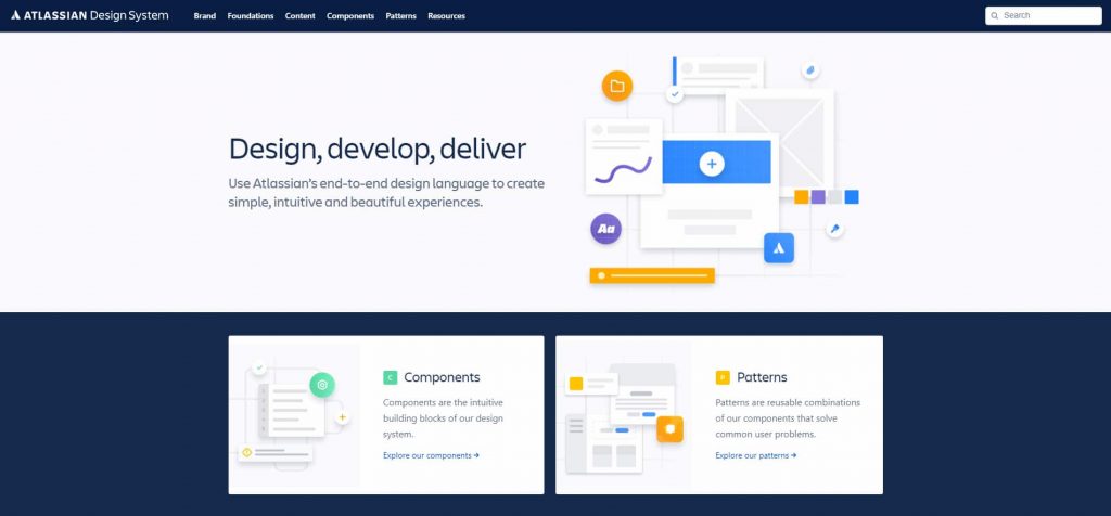 Дизайн систему Atlassian часто называют образцовой, и не без оснований. Она включает в себя все, что может понадобиться команде дизайнеров и разработчиков — от библиотек компонентов и шаблонов, до глубокого понимания бренда Atlassian, стилистических основ и контента.
