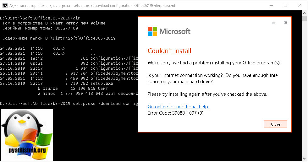 Чтобы закончить, нам нужно только сохранить этот файл который мы только что создали в каталоге, куда мы ранее извлекли программу Microsoft Office Deployment Tool. Затем мы запускаем окно командной строки от имени администратора. Здесь мы уже можем использовать следующую команду для выборочной установки: