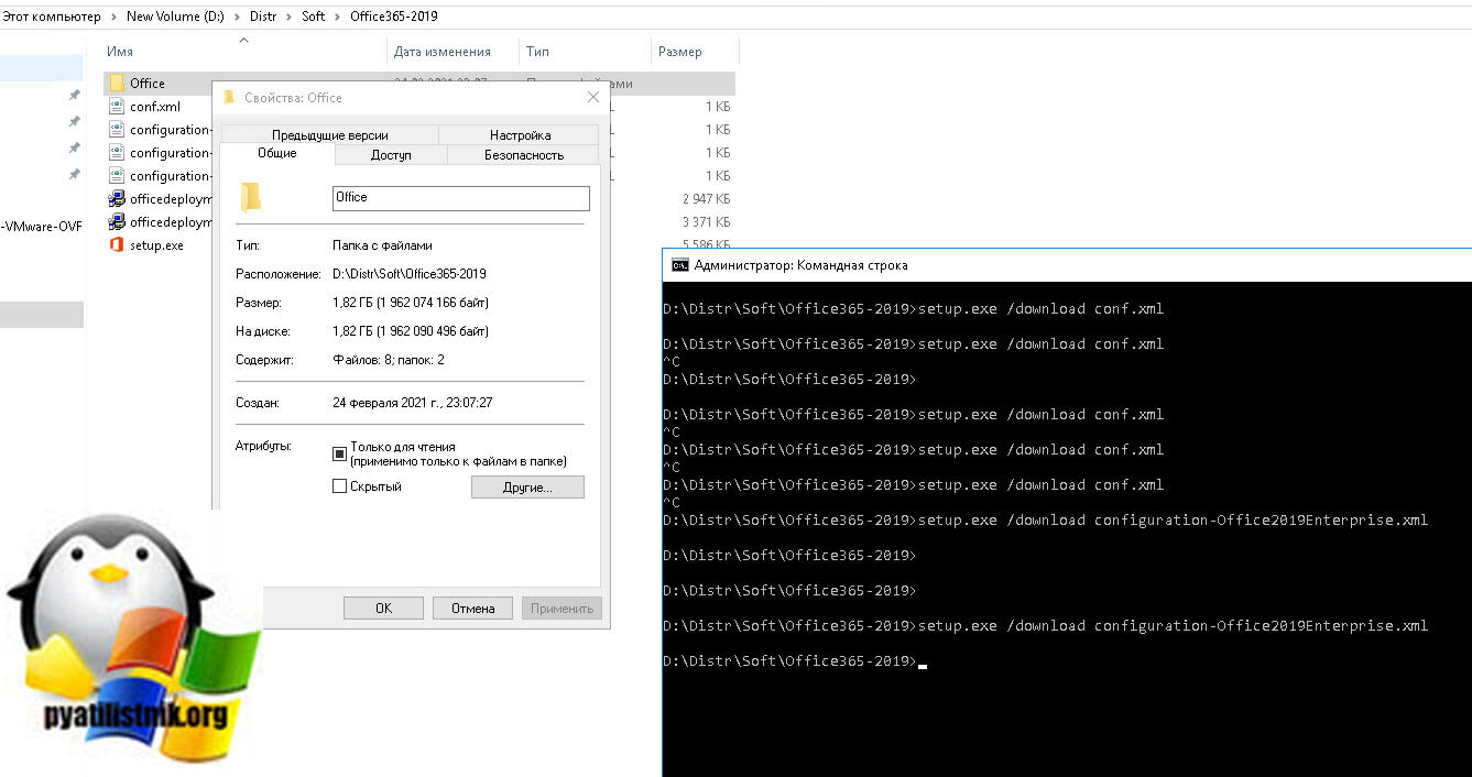 В результате чего у меня должна появиться папка Office в D:\Distr\Soft\Office365-2019.