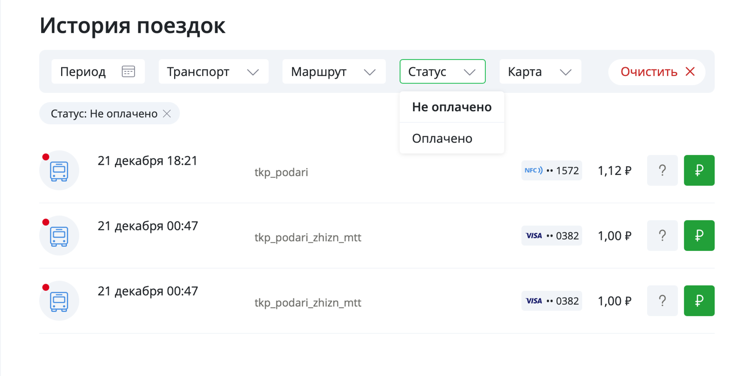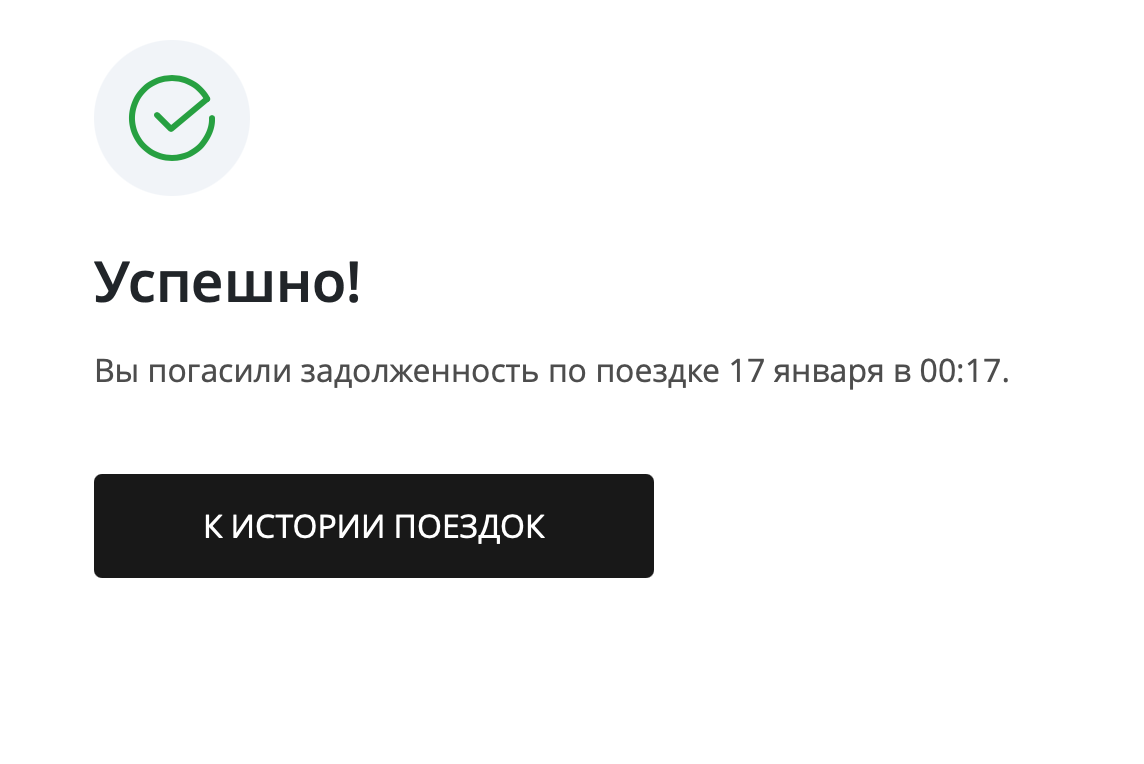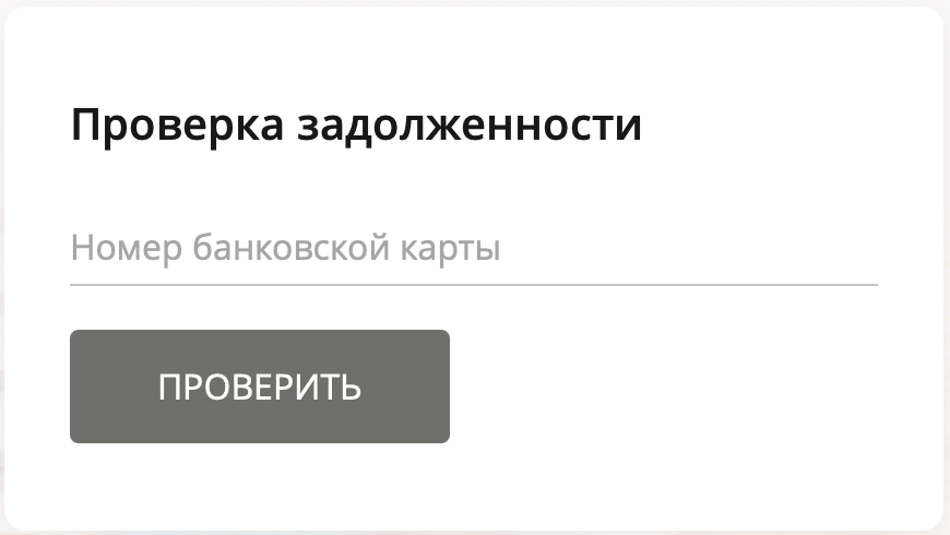 На главной странице возможна проверка наличия неоплаченных поездок по банковской карте, как по номеру карты, так и по номеру токена.