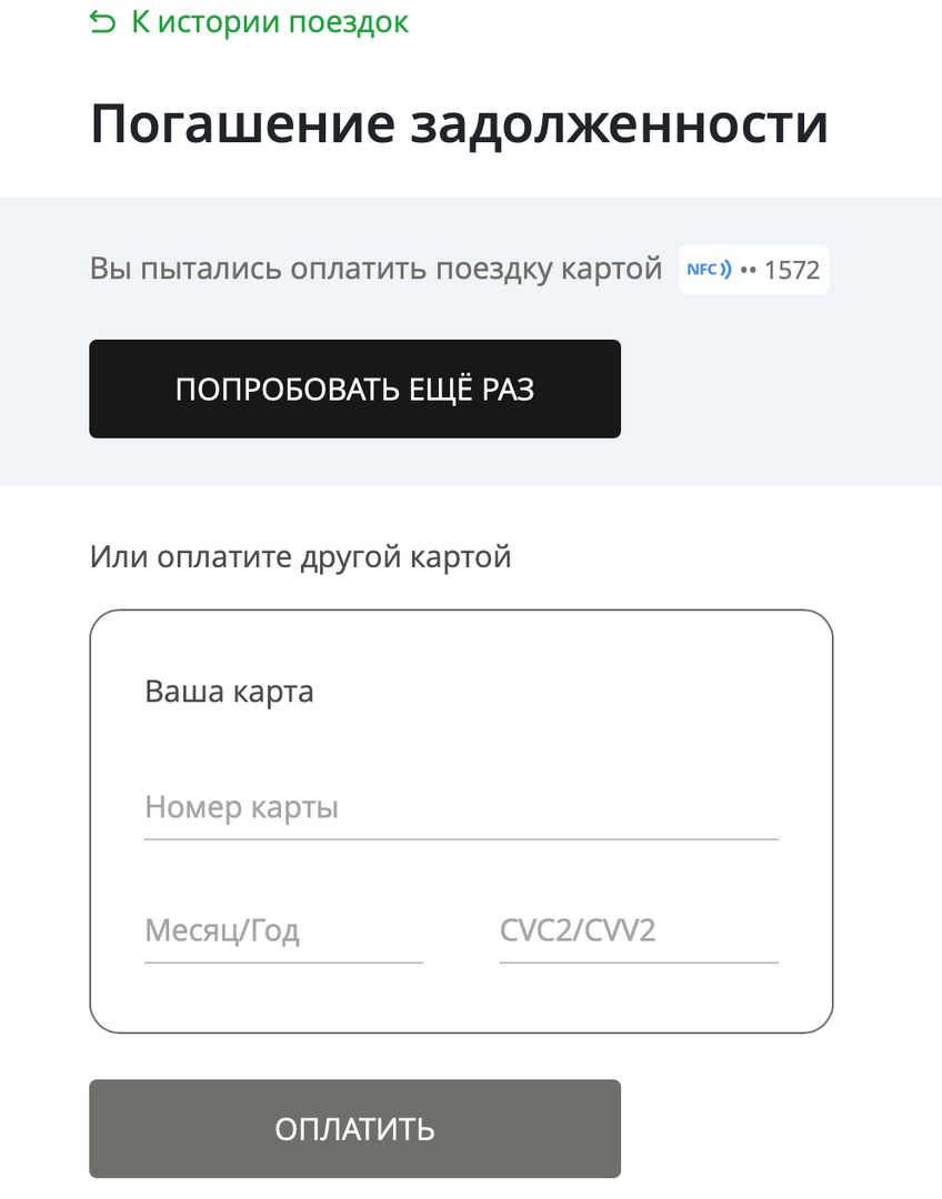 Если есть задолженность имеется, то необходимо зарегистрироваться в личном кабинете и привязать Банковскую карту, по которой совершались поездки