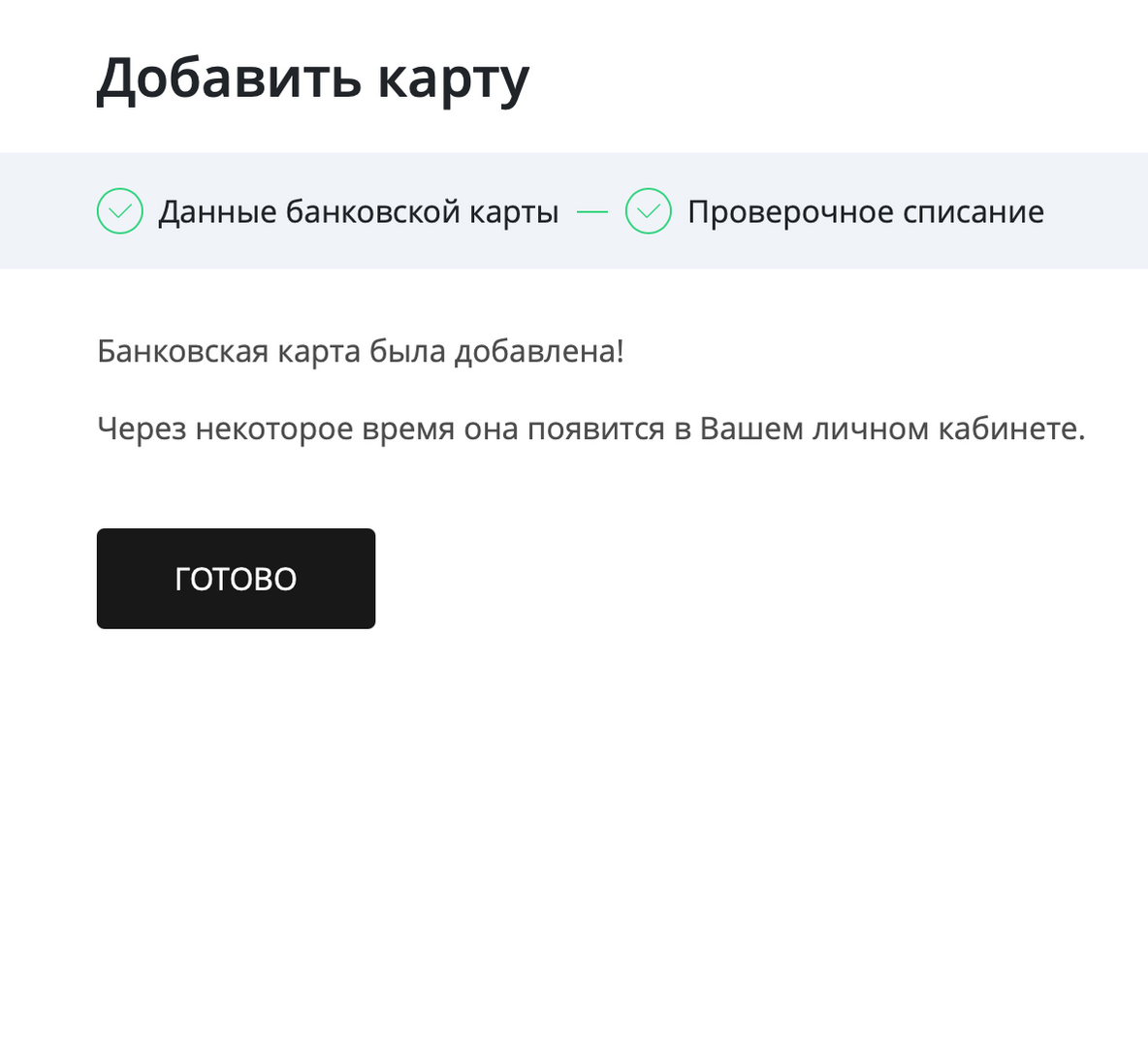 После завершения платежа пользователь будет перенаправлен на указанный ранее URL. Для обработки результата платежа на вашем сайте, вы можете использовать скрипт на сервере или веб-хуки.