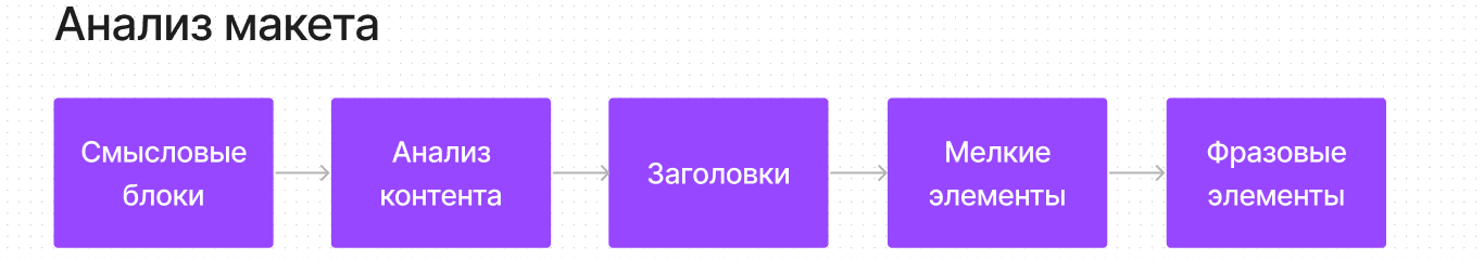 Смотрите макет по принципу «Снаружи — внутрь» — двигаясь от крупных смысловых элементов к деталям дизайна. Чтобы было удобнее, сделайте дубликат макета в Фигме и пишите там заметки о том, что нашли.
