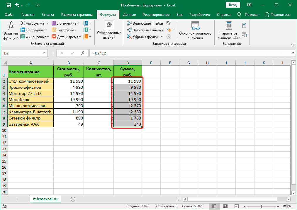 Проблемы с работой формул в Microsoft Excel