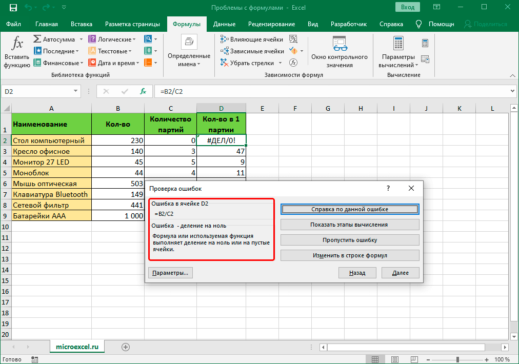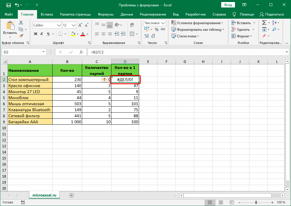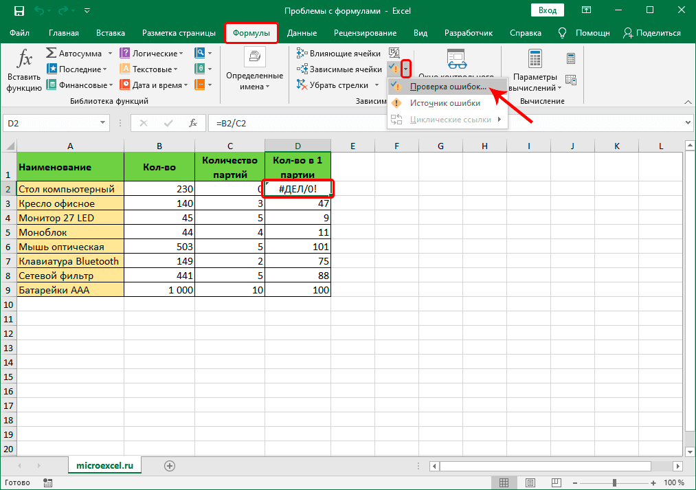 ошибки, приводящие к #N/A, #REF, #DIV / 0! и т. д.