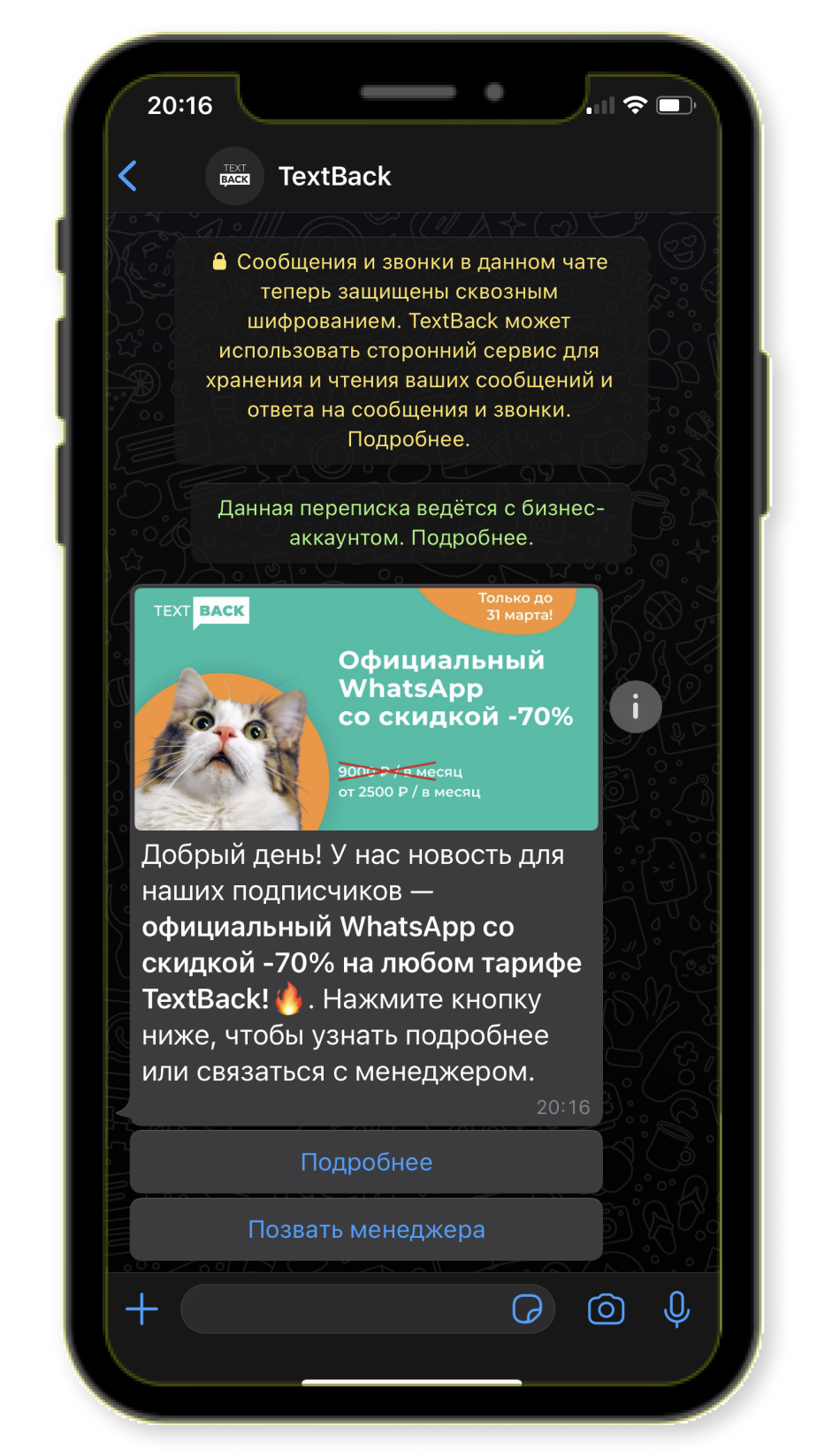 Соблюдайте правила WhatsApp и торговую политику мессенджера.
