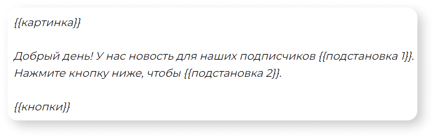 Согласуйте шаблон один раз — и вы сможете использовать его в любом количестве рассылок без дополнительных утверждений, меняя переменные по своему усмотрению.