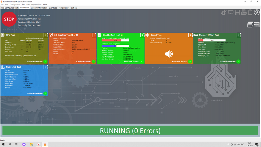 Запустив стресс-тест в AIDA 64 на 35 минут температуры также остались невысокими. Примерно такими же, как и при тесте программой Cinebench r23
