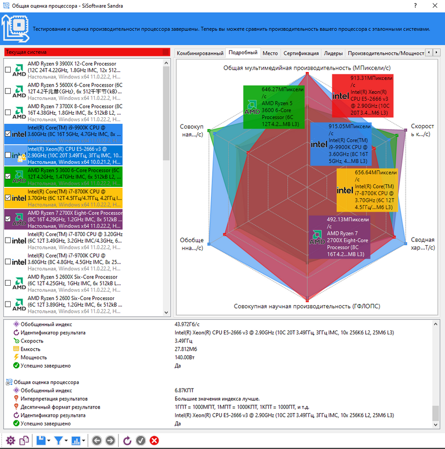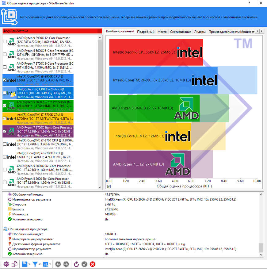 С помощью SISoftware запустил оценочный тест процессора и сравнил с такими процессорами по типу: r5 3600, r7 2700, i7 8700k и судя по результатам данный процессор не сильно уступает им.