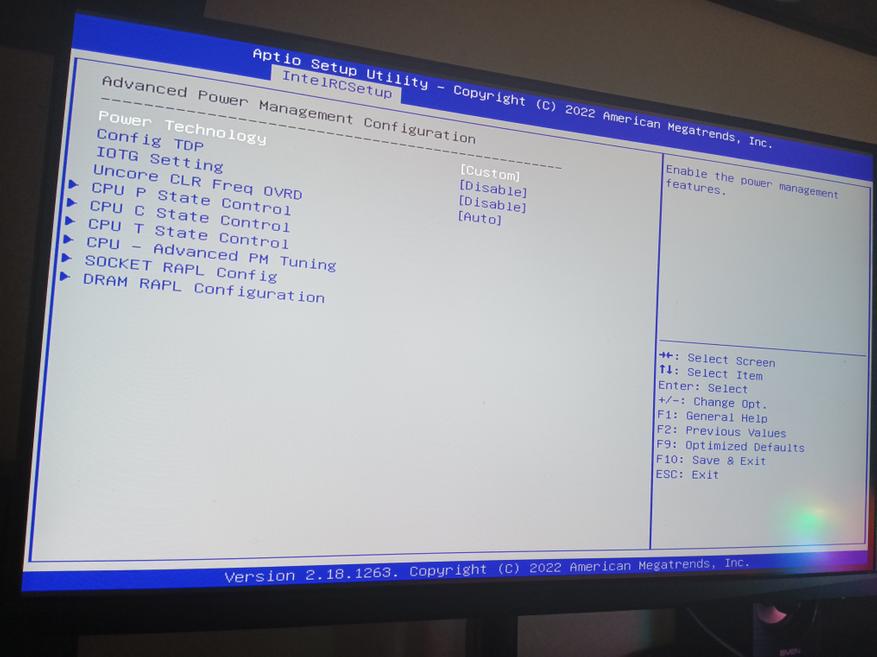 - В биосе находим меню CPU Power Management Configuretion, в нем переключаем значение Power Technology в Custom. В открывшемся меню переводим параметр CPU C6 Report в положение Disabled. Сохраняемся, перезагружаем систему и проверяем эффект.