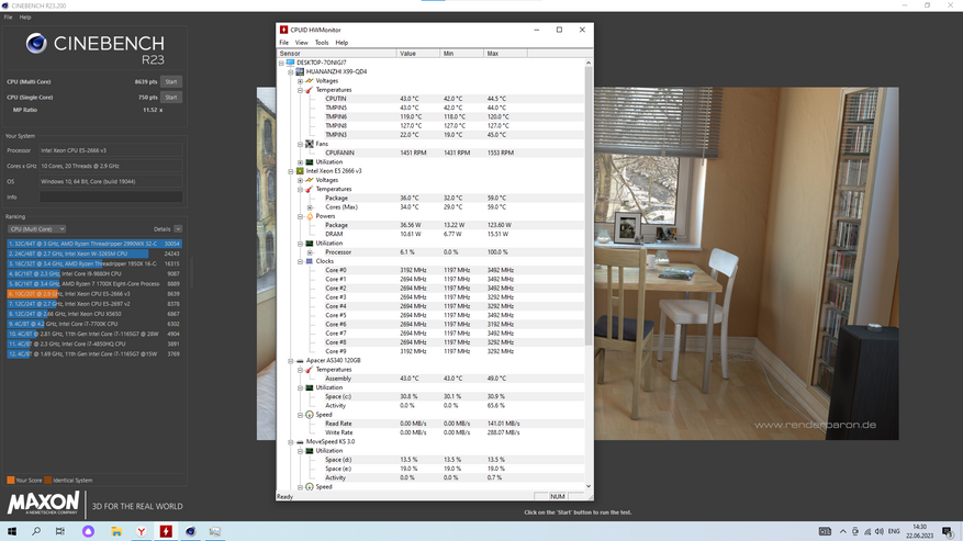 Процессор гонялся под нагрузкой созданной программой Cinebench r23. Температура процессора не поднималась выше 59°C. А температура материнской платы выше 45°C. Температура в 120°C и 127°C отображается всё время. Вероятней всего просто заглушка.